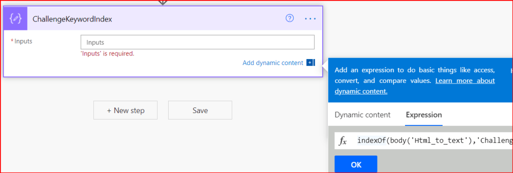 indexOf(body(‘Html_to_text’),’Challenge:’)