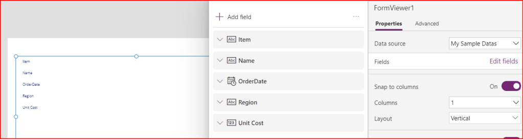 - DataSource used is an entity named My Sample Data which has been created in Microsoft Dataverse.