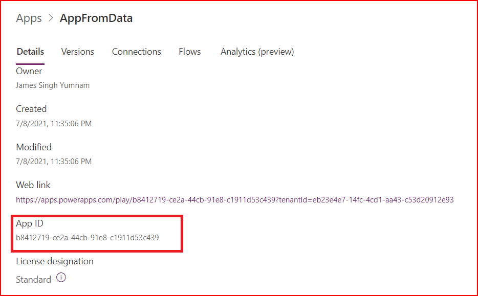 - Copy the App ID and note it down. (We need this ID later to use with the cmdlet)