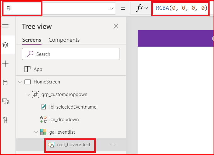When an item has been selected, the gallery should be hidden again. So, let’s add the below code to the OnSelect property of this rectangle control.